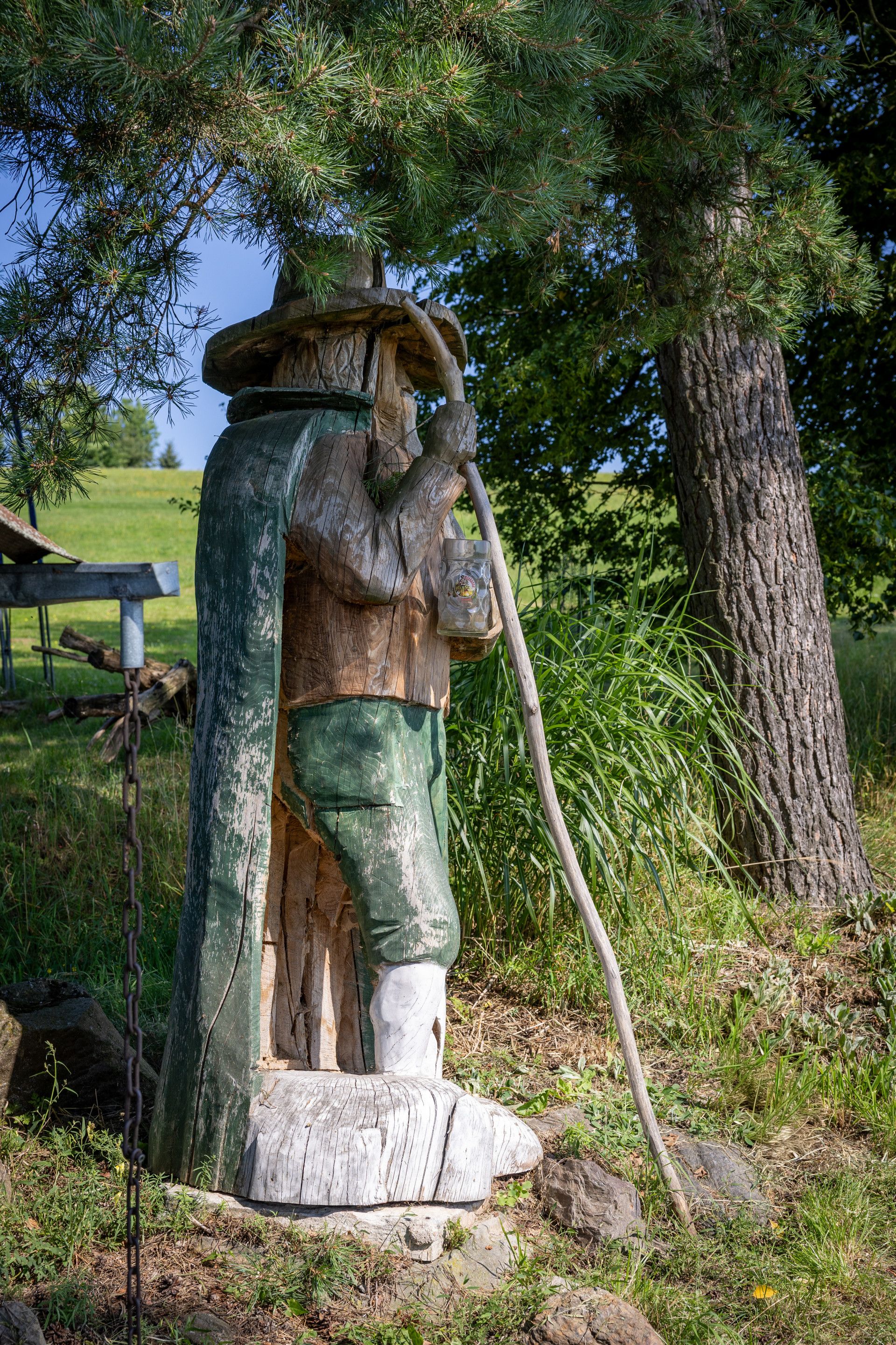 Mám dva příběhy. První se týká Krakonoše, kterého jsem začal vyřezávat ze 2,5metrového špalku u hranice pozemku. Udělal jsem ale chybný řez, což mi sebralo chuť a elán v něm pokračovat, a tři měsíce mi trvalo, než jsem se k němu vrátil. Nakonec jsem chybu opravil a socha dnes slouží jako orientační bod nejen pro sousedy, ale i pro kurýry – říkají: „Jo, to je tam u toho Krakonoše.“ Druhý příběh je spíš varovný. Chystal jsem dárek, misku se zamilovanými kočkami, pro kolegyni mé zesnulé ženy. Pracoval jsem ve spěchu s flexou. Sundal jsem kryt kotouče a při řezu si poranil prsty. Bylo z toho pár stehů, ale dílo jsem ještě ten den dokončil a oslava proběhla. Kolegyně měla velkou radost a já navíc dostal i malé bolestné.